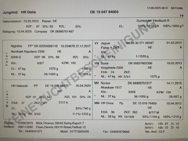 Ein Rind zu verkaufen von Reiner Elsen | Sep. 12, 2025 Anzeige aufgeben Ein Rind zu verkaufen Auf Bild klicken um zu vergrößern. Kontaktinformationen Ansprechpartner Reiner Elsen Telefonnummer: 01773920420 Weitere Informationen Hallo Zum Verkauf haben wir eine tragende Ferse . Sie ist am 15.04.2025 mit dem dänischen Bullen Compass besamt . Bei Interesse gerne melden.