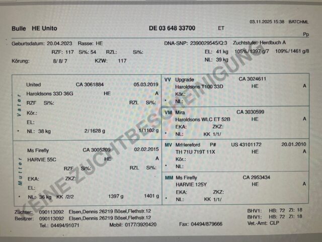 zum Verkauf steht bei uns ein junger Deckbulle. Ein Embryo gezogen aus der HARVIE Zucht aus Kanada. Er hat bei uns jetzt erfolgreich einige Färsen gedeckt.